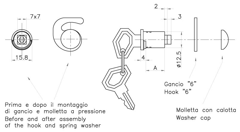 El cilindro está disponible en tres modelos: H18 – H23 – H25 y completo con 2 llaves. Bajo pedido se pueden suministrar diferentes modelos de ganchos
